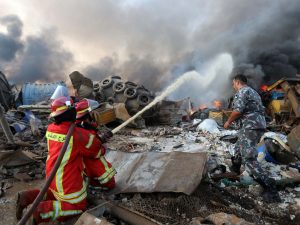 مشهد الدمار واحد في بيروت، وقد أظهرت عدسات الكاميرات مرفأ بيروت مُدمّر بالكامل إضافة الى الاهراءات. وتعمل عناصر الدفاع المدني على إخماد الحريق في موقع الانفجار في بيروت والجيش يضرب طوقاً أمنياً في محيط المرفأ.