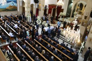 المعاون البطريركي جورج اسدوريان، قال: “نودع بمرارة رجلا بطلا وزوجا مخلصًا وحريصًا على عائلته وأبا ومسيحيًا مؤمناً، نودّع شهيدنا الكبير الامين العام لحزب الكتائب او كما كنا نحب ان نسميه نازو بالرجاء المسيحي، وتابع متوجها للشهيد فقال: “لقد فارقتنا وانت شهيد الواجب حتى اخر لحظات حياتك وفي بيتك الذي تحبّ وعُدت من أجله”.